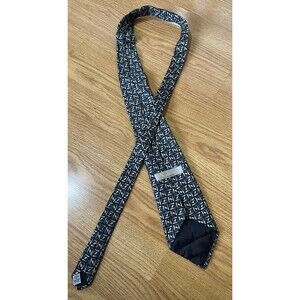 Aquascutum Of London Green Gold Geometric Pattern 100% Silk Tie