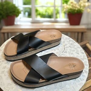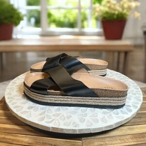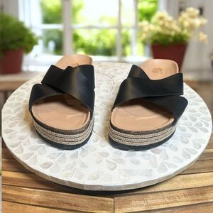 Aquatalia $295 Ariana Espadrille Platform Slide Sandals Black Leather Slip-On Wo