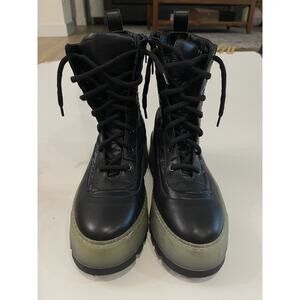 Aquatalia Aisa Recycled Nylon Leather Glossy Chunky Platform Eco Boots Size 9