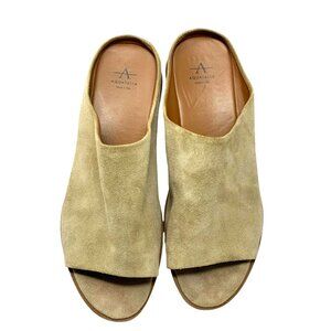 Aquatalia Anne Tan Suede Low Wedge Open Toe Mules