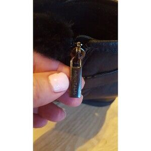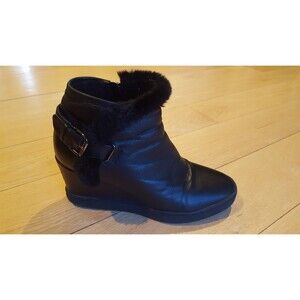 Aquatalia BLACK WEDGE Leather Women's Ankle Boots, zip, fur trim size 8