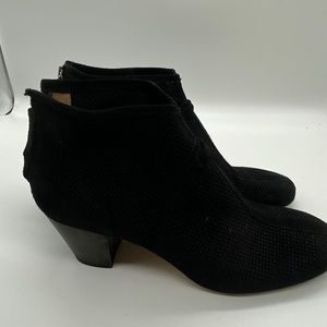 Aquatalia Black Ankle Boots Stippled Leather Stacked Heel 10