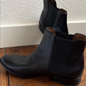 Elegant black leather ankle boots. Sleek design with a classic look. Ideal for versatile wear.