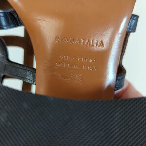 Aquatalia Black Leather Grid Slip On Heels 7.5