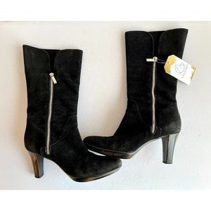 Aquatalia Black Suede Zip-Up Mid-Calf Boots, Size 7.5 (US)