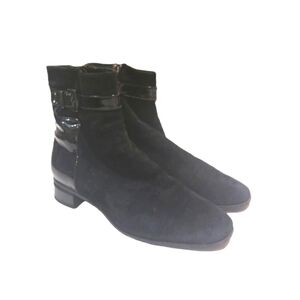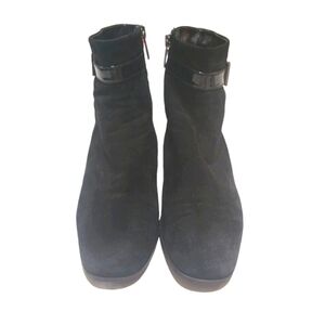 Aquatalia Black Suede and Patent Leather Boots Ankle Booties Size 7.5