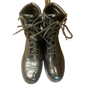 Aquatalia Black Croc Print Ankle Boot NWOB Size 8