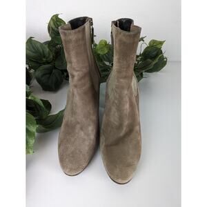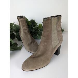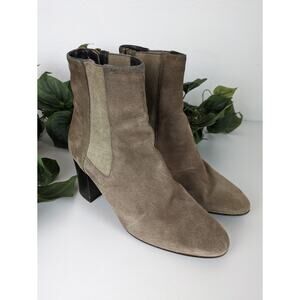 Aquatalia Boots Frida Ankle Boots Suede Chelsea Taupe Ban Block Heel Size 8