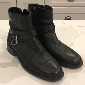 Aquatalia Bree Ankle Boot Water Resistant Buckle Black Made Italy Women's 7.5
