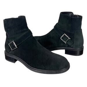 Aquatalia Bree Suede Ankle Boots Black Women’s 8 Side Zip Moto Dark Academia