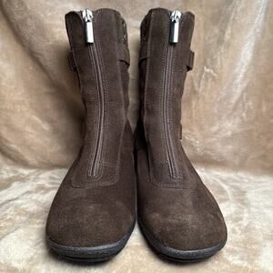 Aquatalia Brown Suede leather Waterproof Wedge Heel Zip Boots Women’s Size 7.5