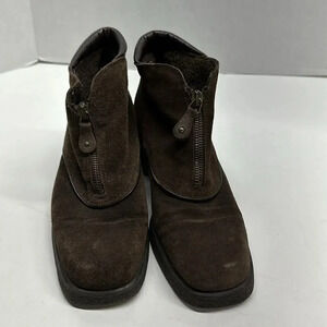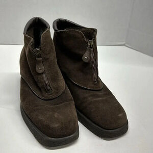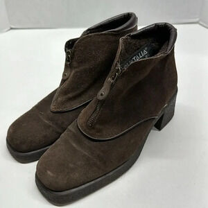 Aquatalia By Marvin K Ankle Boots Booties Zip Up Front Brown Suede Size 8.5