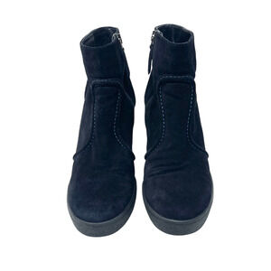 Aquatalia Camellia Suede Shearling Lined Wedge Ankle Boots - Black - Size 6