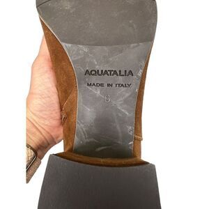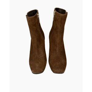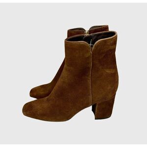 Aquatalia Caramel Brown Suede Block Heel Square Toe Ankle Side Zip Boots Size 8