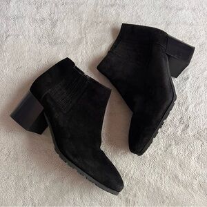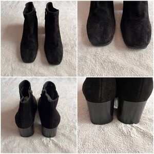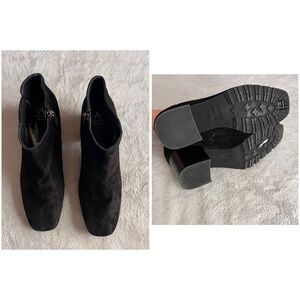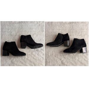 Aquatalia Charlotte Weatherproof Suede Leather Block Heel Ankle Boot Black 7.5