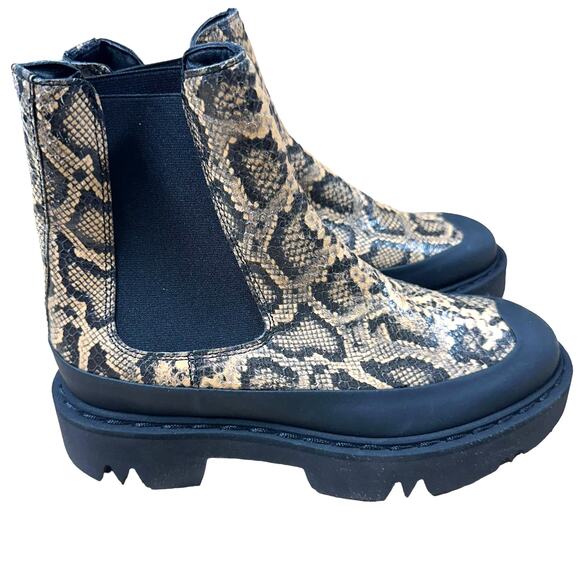 A wild snakeskin pattern occupies the upper of this city-chic boot that is crafted from fine Italian leather and a fortified lugged sole.