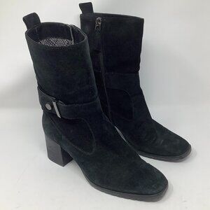 Aquatalia Collette Waterproof Suede Booties 7.5 black low calf buckle block heel
