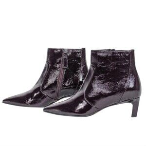 Aquatalia Dark Burgundy Patent Kitten Heel Pointy Toe Booties Size 10