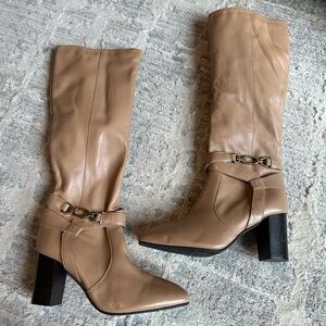 Aquatalia Gorgeous Tan Knee-High Leather And Gold Hardware Women's Boots Size 9