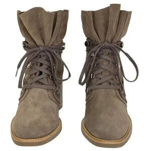Aquatalia Elise Taupe Suede Leather & Canvas Womens Ankle Boots Size 7 NEW