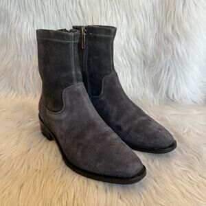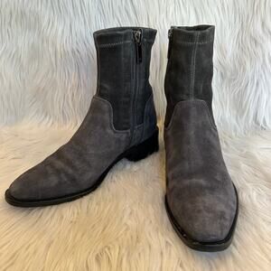 Aquatalia Fallan Stretch Ankle Boots Suede Leather Flat Waterproof Gray