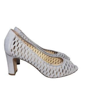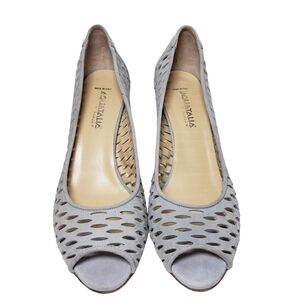 Aquatalia Gray Peep Toe Suede perforated heels Sz 8