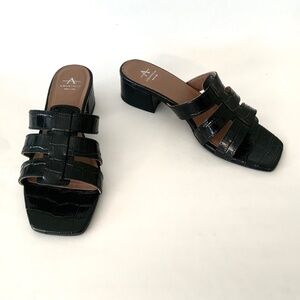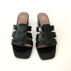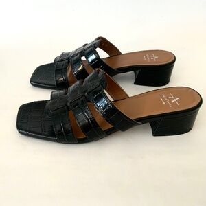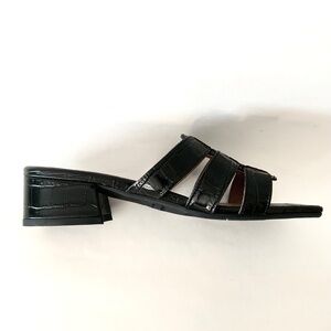 Aquatalia Harla Croco Caged Mule Sandals Black Leather Croc Embossed Shoes 8