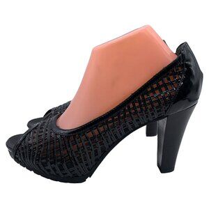 Aquatalia Heels Peep Toe Pumps Laser Cut Out Black Patent Leather Women’s Sz 9