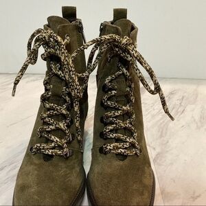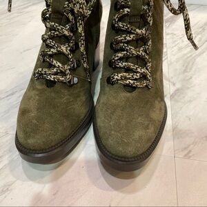 Aquatalia Ihana Water Resistant Lace Up Green Suede Heeled Boot 7M