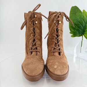 Aquatalia Iole Quilted Suede Lace-Up Booties Women 10.5 Brown Weatherproof Boots