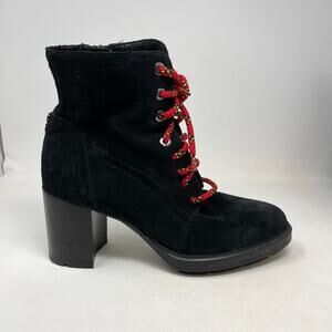 Aquatalia Isotta Black Suede Waterproof Block Heel Lug Ankle Booties Boots 9.5