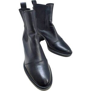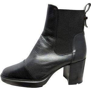 Aquatalia Ivory 338781 Black Leather Chunky Heel Chelsea Bootie