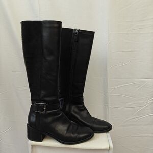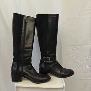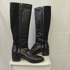 Aquatalia Jessa Black Leather Riding Boot Black Leather Stretch Boot Size 8