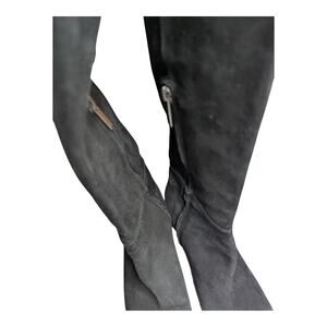 Aquatalia Karly Black Suede Knee High Pointed Toe Block Heel Minimal Boots 9.5