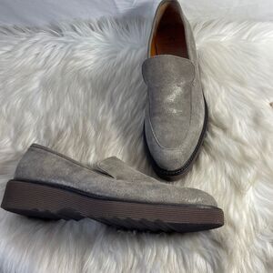Aquatalia Kelsey Grey Distressed Suede Loafers Sz 9