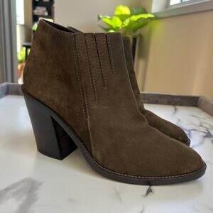 Aquatalia Loren Olive Suede Waterproof Ankle Booties Size 9.5