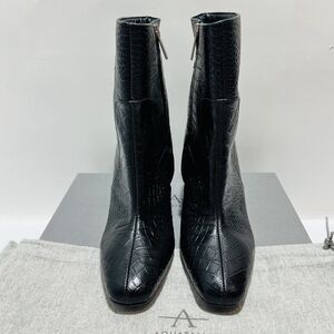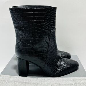 Aquatalia Luzio US 9M Ankle Boots Bootie Black Croc Leather Side Zip NIB $595