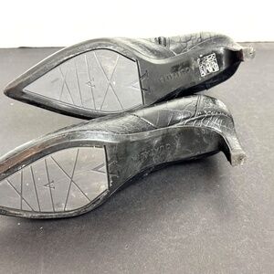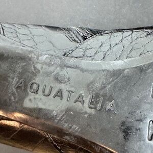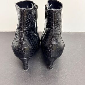 Aquatalia Marilisa Crocodile embossed leather booties in black. Size 6.5 with 2” heel, side zip in very nice condition.