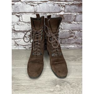 Aquatalia Marvin K Brown Suede Lace Up Block Heel Combat Boots Women 36EU/6M US