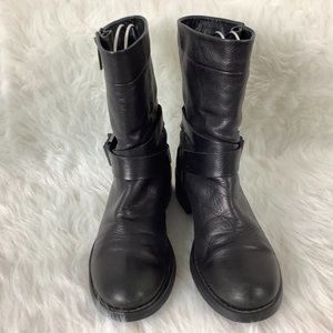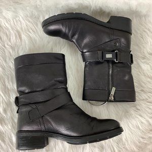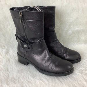 Aquatalia Moto Black Sami Rustico Waterproof Calf Biker Moto Leather Boot 6.5