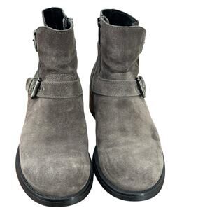 Aquatalia Moto Boot Sophia Buckle Suede Waterproof Women's SZ 6.5 Winter Gray