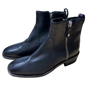 Aquatalia NWOB Colbie Weatherproof Black Leather Bootie Size 9M Side Zip Moto