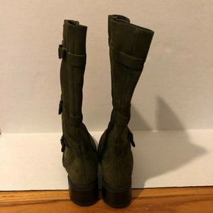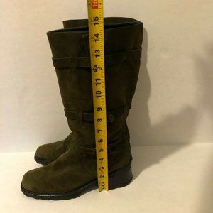 Stylish knee-high suede boots. Features buckle accents. Perfect for any occasion.
