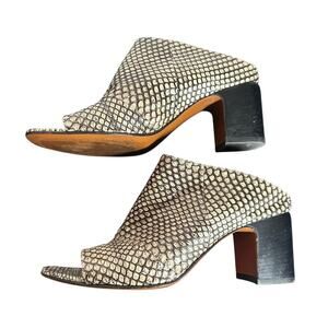 Aquatalia Python Embossed Leather Peep Toe Block Heel Mule 9.5 Italy
