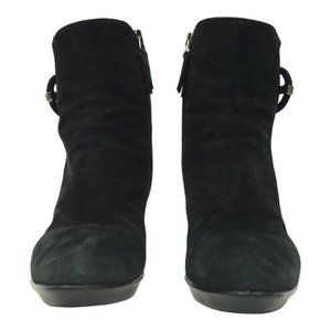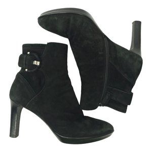 Aquatalia Rachele Side Zip Suede Ankle Boots Womens 8.5 Buckle Detail Stiletto