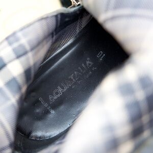 I wear a size 9, but these kinky boots fit me if I have thick wool socks on. Super comfortable on the inside with padded plaid material. These boots are in incredible shape, and have only been worn a few times. Please view all photos thoroughly for full condition, as there are minor flaws if you look closely. Super sexy, retro James Bond vibes! Kinky boots, just in time for Christmas! Patent leather ankle boots made by hand in Italy, the Aquatalia Rhumba style. Zipper at the side, and ready to kick it!