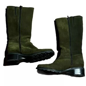Aquatalia Romania Suede Olive Green Mid Calf Pull on Equestrian Ryder Boots 8.5