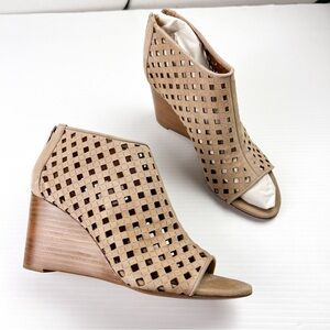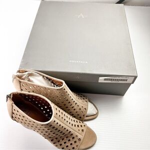 Aquatalia Sandals women 6 Nikita Tan Open Toe Suede Wedge Booties