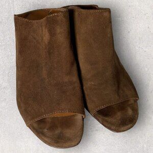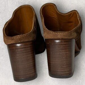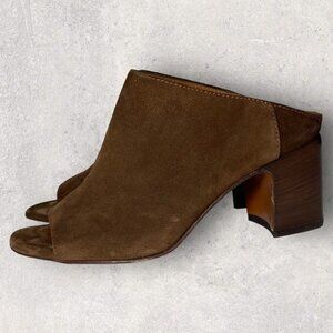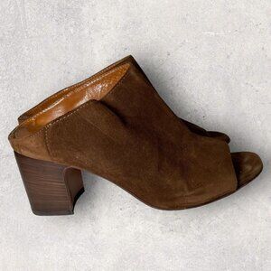 Aquatalia Seneca US 8 Brown Suede Mule Open Toe Heel Shoe Block Heel $475