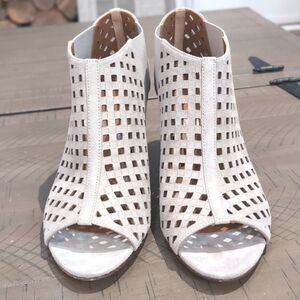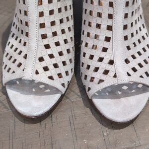Aquatalia Shari Gray Suede Perforated Caged Heel Booties Sz 10.5